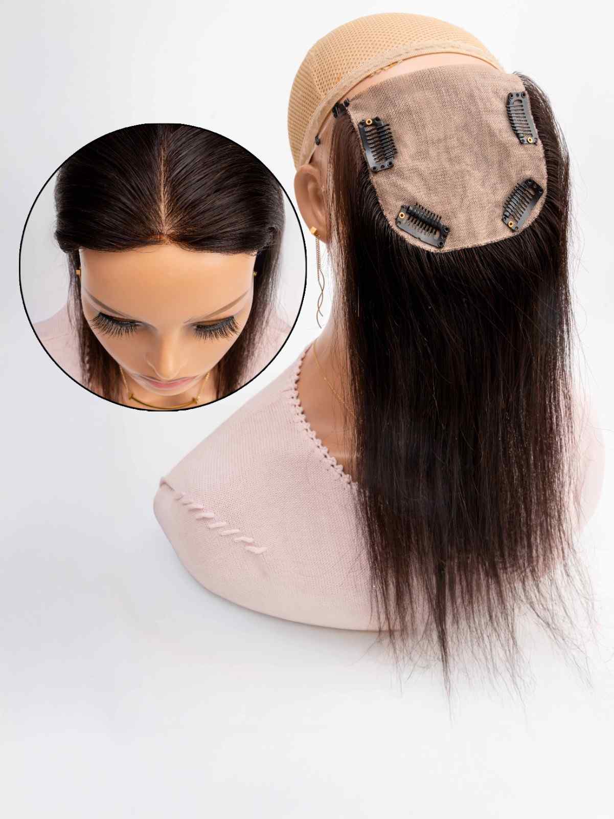 A lightweight 4×4 skin base hair topper, designed for a seamless, natural look—ideal for hair thinning in the front and crown area. Made with premium natural human hair and Swiss HD lace, it offers a breathable, comfortable fit with a realistic hairline for everyday confidence.